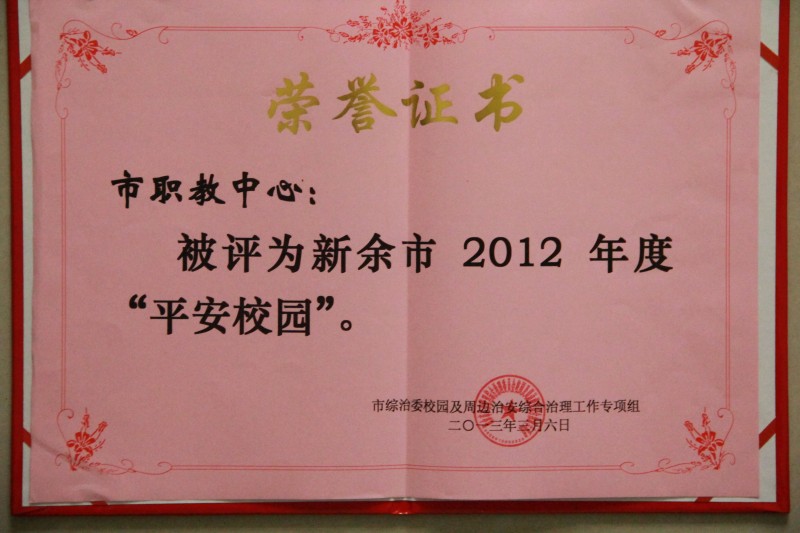 ◇ 2012年学校荣获的各项荣誉证书