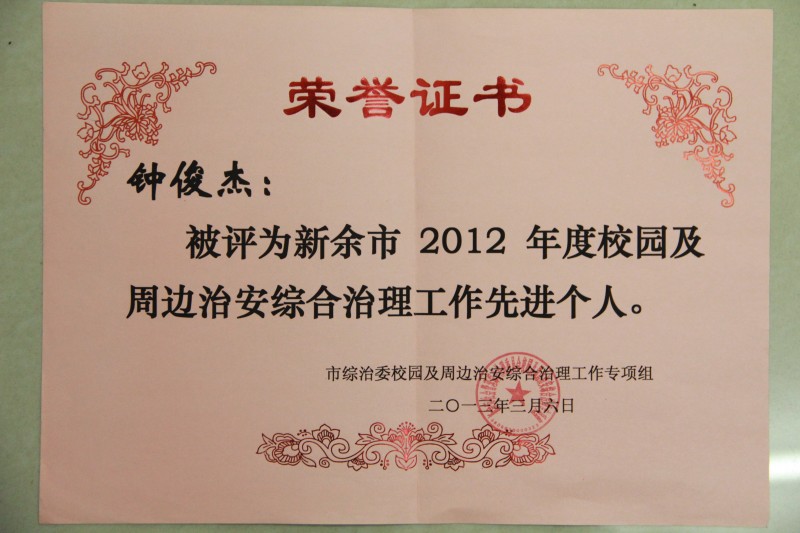 ◇ 2012年学校荣获的各项荣誉证书
