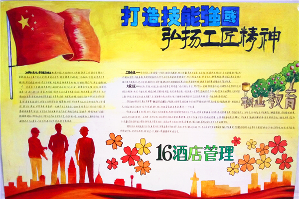 为大力弘扬工匠精神,加强校园精神文明建设,彰显班级文化建设魅力,5月11日,市职教中心举行了“职业教育活动周”系列活动之板报、手抄报评比大赛。