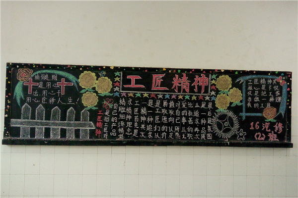此次大赛以“弘扬工匠精神”为主题,得到了全校各班级的积极响应,抒发了班级对专业的情感,设计的板报及手抄报主题鲜明、布局美观、图文并茂。学校组织多名老师对各班级的黑板报进行全面检查评比,从中评出一等奖多名并颁发奖状,取到良好的榜样示范作用。