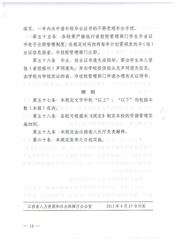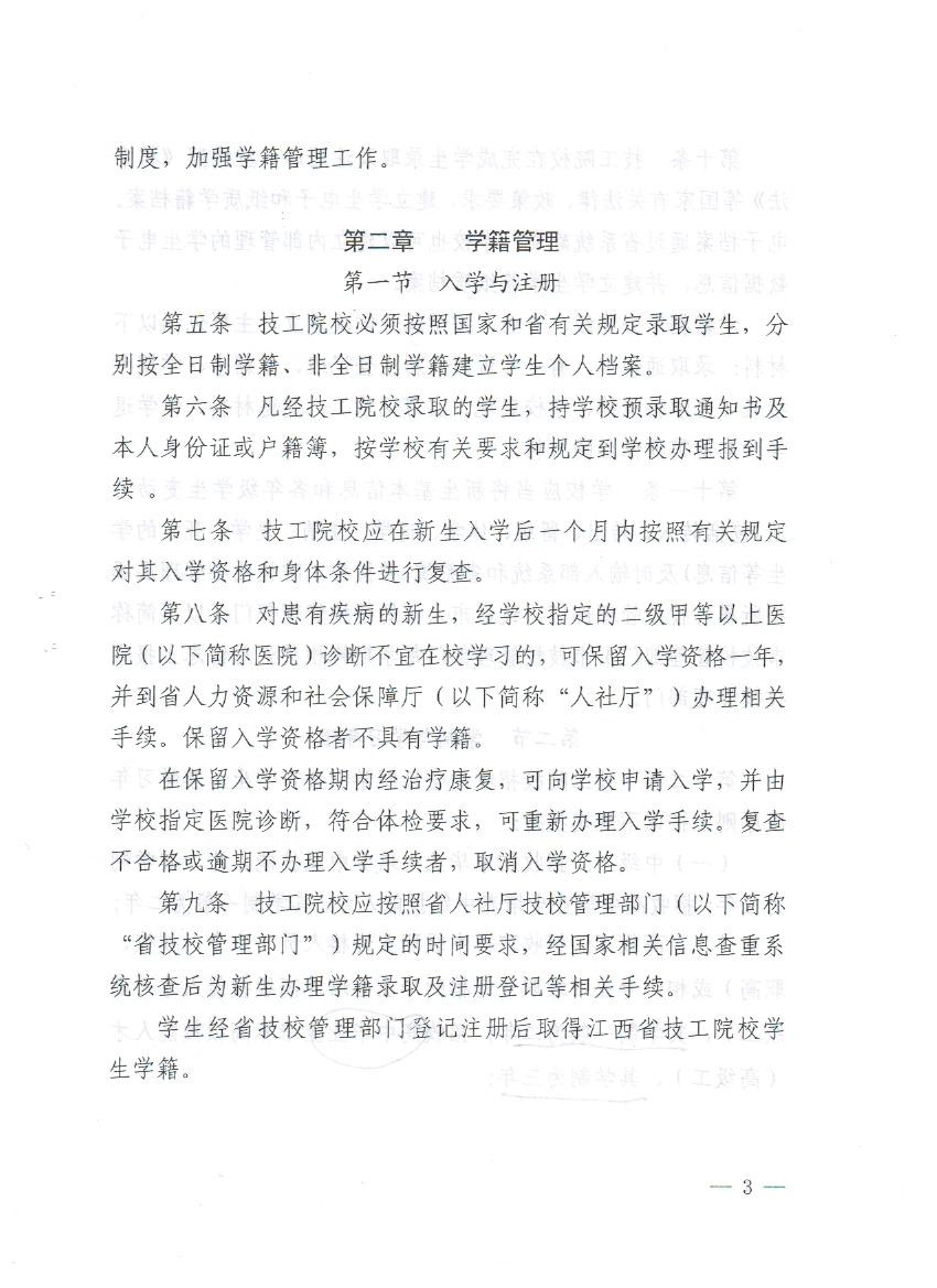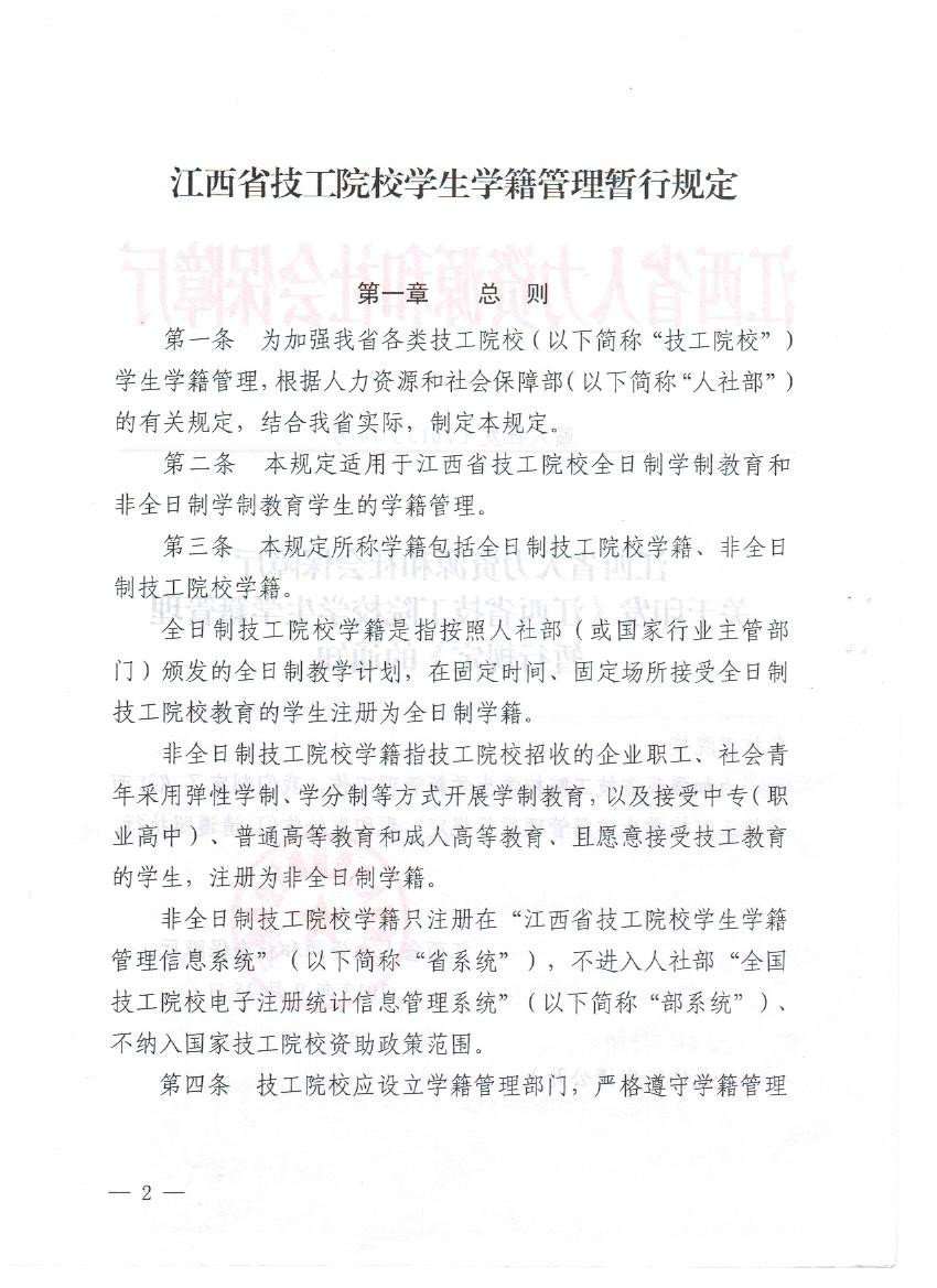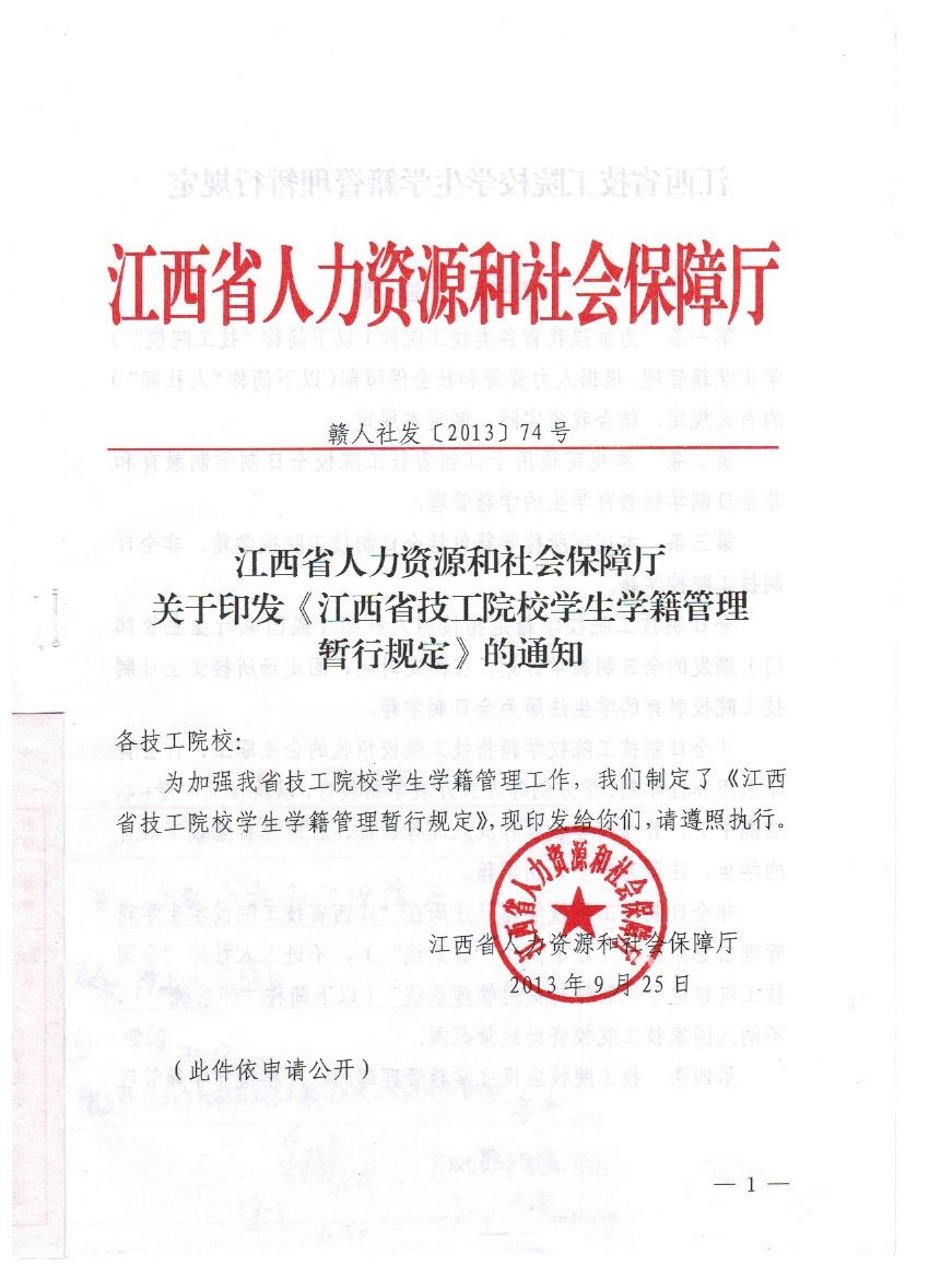 江西省人力资源和社会保障厅关于印发《江西省技工院校学生学籍管理暂行规定》的通知