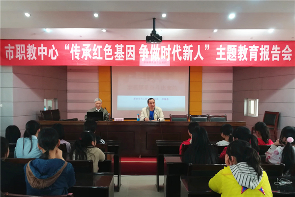 为深入贯彻习近平新时代中国特色社会主义思想,弘扬社会主义核心价值观,引导青少年成长为担当民族复兴大任的时代新人,4月19日下午,市职教中心邀请市关工委思想道德教育报告团成员李德惠老师,来校做“传承红色基因 争做时代新人”主题教育报告会,学校副校长李峰陪同。