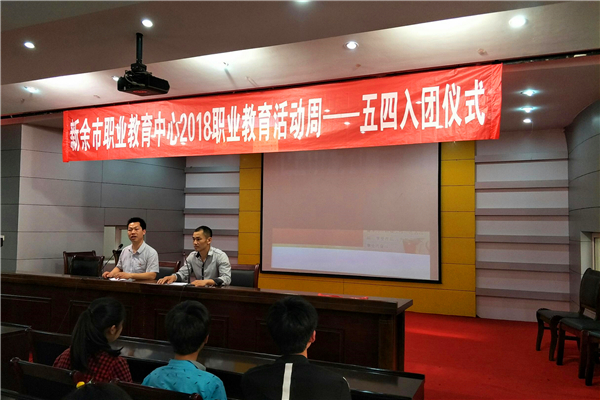 为迎接市职教中心2018年“职业教育活动周”活动,5月3日下午,对于职教中心每位即将加入共青团的新团员来说是一个终生难忘的日子。当天,一场声势浩大的入团仪式在图书馆五楼会议室举行,会议由校团委委员袁鹏主持。