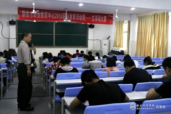 为了丰富同学们的校园文化生活,弘扬中华优秀传统文化,营造书香校园,陶冶学生情操,营造“职业教育活动周”氛围,市职教中心基础教研室于5月10日下午四点半在B201多媒体教室组织开展了全校学生古诗词知识大赛活动。