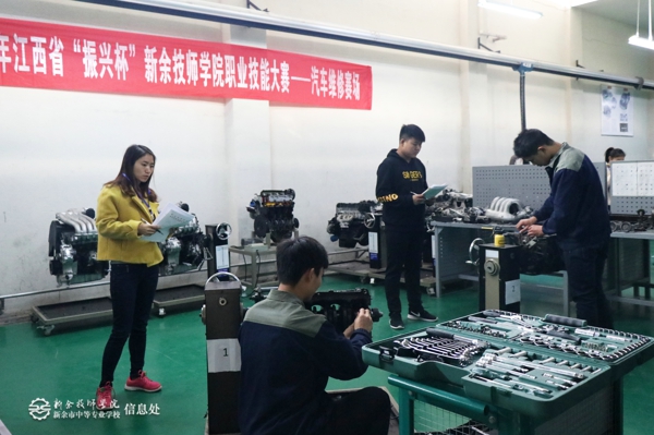学校为了提高汽修专业学生的实践操作的技能,调动学生对汽修专业的兴趣,通过前面预赛选出了20名同学参加此次技能文化节比赛,1128日,新余技师学院在汽修实训厂举行了发动机拆装和现场答题的决赛,经过三位评委公平公正的打分,决出了本次比赛的前六名。