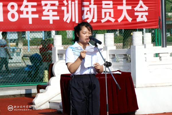 接着,部队教官代表熊志伟发言,他希望同学们做到一切行动听指挥,注意军训安全,共同确保军训任务的圆满完成。随后,2018级学前教育(3)班简勤艳同学代表全体参训学生做出庄严承诺,她表示将刻苦训练、不辱使命,迈好职教校园新生活的第一步。