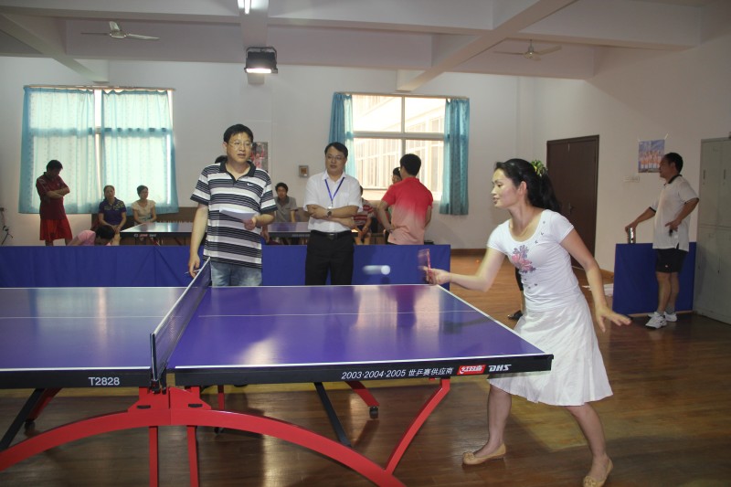乒乓球作为中国的国球,普及率极高,虽然同事们平时没有经过专门的训练,但也都能信手拈来,所以比赛异常激烈。本次比赛以四个工会小组为单位,四个参赛队采取单循环赛制,按积分排定名次。每场比赛采取5盘三胜制,分别为:男子单打、女子单打、男子双打、女子双打、混合双打,每盘比赛采取3局2胜制。各参赛运动员的水平基本接近,这样也使比赛变得更加精彩:直拍、横拍、扣球、旋转球、弧线球等都得到了一一体现,比赛中不时传出热烈的喝彩声,兴奋的“好球”声不断。最终,拥有我校第一男单、第一女单的第二工会小组技高一筹,获得冠军。