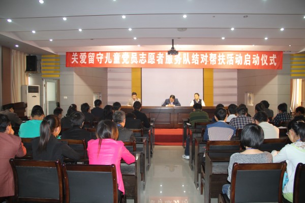 为深入推进党员志愿者活动,大力弘扬奉献、友爱、互助的志愿者精神,促进学校贫困留守儿童的健康成长,根据市委组织部、市教育局有关文件要求,结合自身实际,市职教中心成立了关爱留守儿童党员志愿者服务队,并通过在职党员干部前期全校摸底调查,共筛选出51名留守学生结成“一对一”爱心对子。