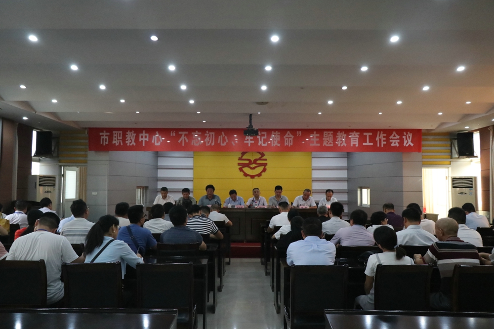 为落实中央、省委、市委及局党委有关精神,安排部署学校“不忘初心、牢记使命”主题教育相关工作,9月17日下午,市职教中心“不忘初心、牢记使命”主题教育工作会议在图书馆五楼会议室召开,市教育局第三巡回指导组何卫兵组长一行及全体在职党员出席大会,会议由校党委委员、副校长刘海林同志主持。