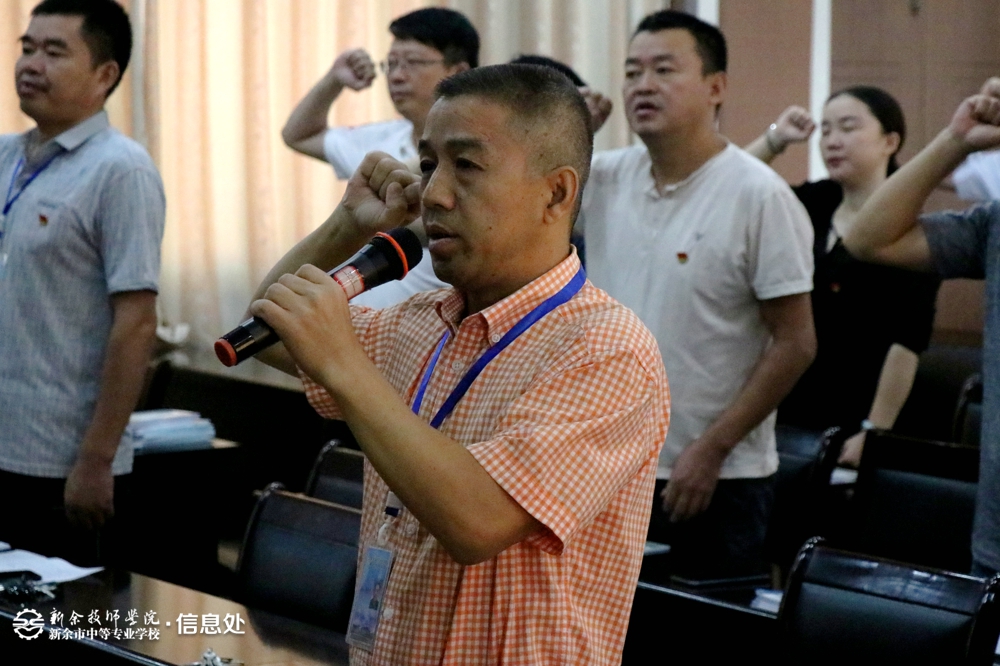 “我志愿加入中国共产党,拥护党的纲领,遵守党的章程……” 铿锵的宣誓声响彻会场。在校长胡浩然同志的领誓下,所有与会党员高举右手,重温入党誓词。