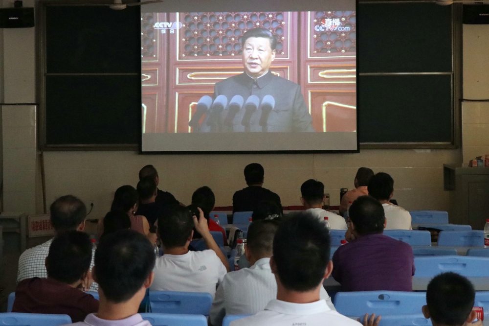 市职教中心党委组织集中收看庆祝中华人民共和国成立70周年大会、阅兵和群众游行实况