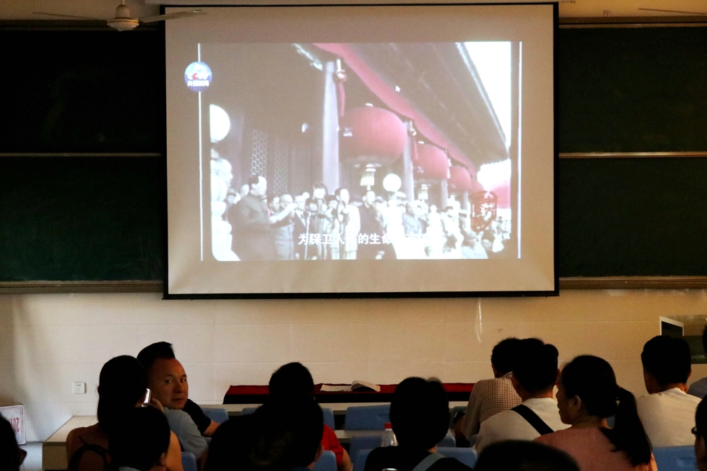 观看大会直播前,党员们集中观看了12分钟版开国大典以及国家勋章和国家荣誉称号颁授仪式。