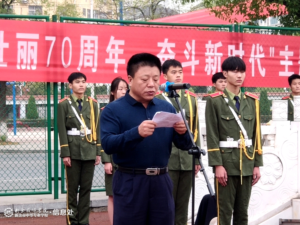 在全体师生的注目下,英姿飒爽的国旗班迈着整齐有力的步伐,护送国旗到升旗台上。在庄严嘹亮的国歌声中,鲜艳的五星红旗冉冉升起,现场气氛庄严隆重,师生同唱国歌,激发了在场师生的爱国豪情。来自19电气班的廖云峰进行了国旗下的演讲,他动情讲述了祖国70年的砥砺奋进,用他的青春宣言表达了要追随先辈足迹,为创造属于青年一代辉煌而奋斗的决心。仪式上,学校副校长刘海林发表讲话,他回顾了庆祝中华人民共和国成立70周年大会阅兵仪式上的精彩时刻,要求全校师生站在新中国成立70周年的伟大历史节点上,要珍惜来之不易的今天,继续继承前人的优良传统和不屈不挠的奋斗精神。要求全体教师要谨记总书记的教诲,做学生锤炼品格的引路人,做学生学习知识的引路人,做学生创新思维的引路人,做学生奉献祖国的引路人。期望全体同学听党话,跟党走,胸怀忧国忧民之心、爱国爱民之情,以一生的真情投入、一辈子的顽强奋斗来体现爱国主义情怀,让爱国主义的伟大旗帜始终在心中高高飘扬。