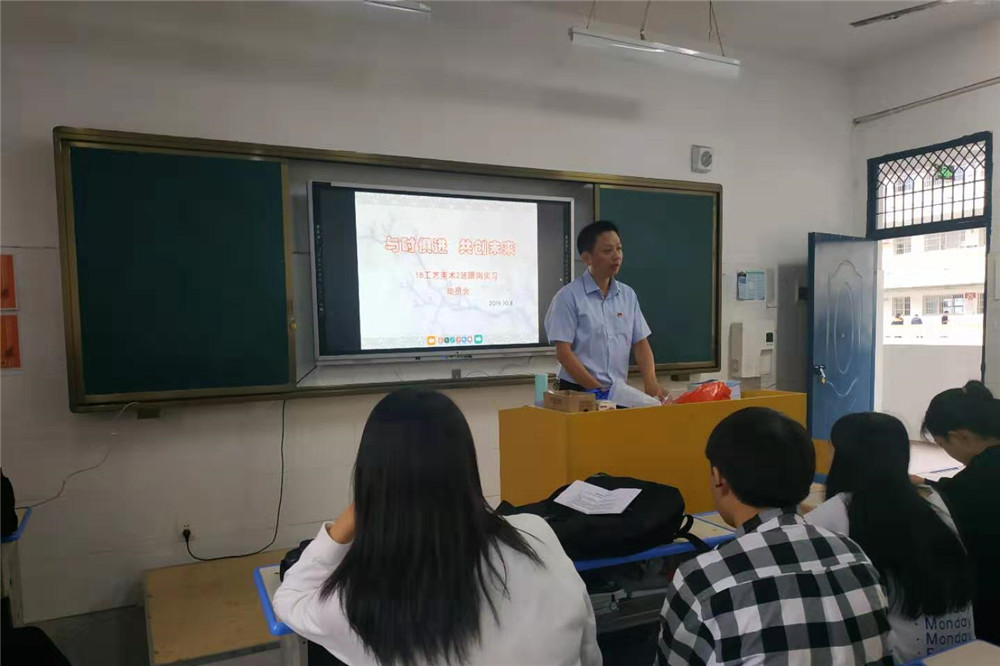 为了进一步促进工艺美术专业学生跟岗实习的顺利进行,10月8日,于教学楼B405如期召开跟岗实习动员会,实习中心主任帅国勇、带队实习老师王跃出席动员会,本次动员会由班主任王有吉主持。