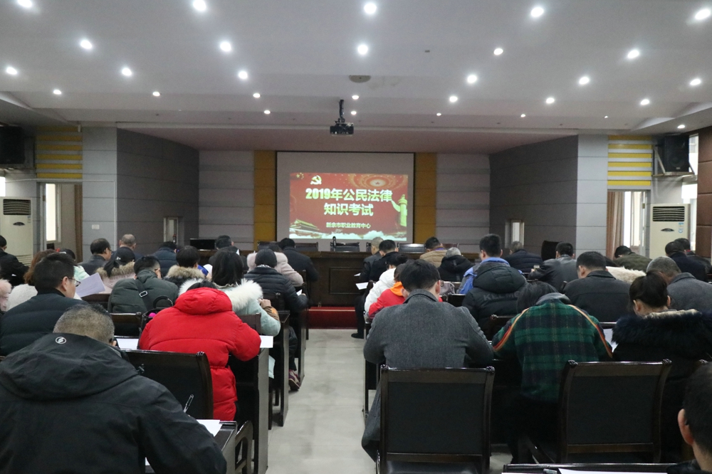 为全面贯彻落实党的十九大和十九届二中、三中、四中全会精神,深入贯彻落实习近平新时代中国特色社会主义思想和全面依法治国新理念新思想新战略,推进以宪法为核心的中国特色社会主义法律体系的学习宣传,推进党内法规的学习宣传,1月11日上午,市职教中心组织全体教职工在图书馆五楼会议室开展2019年公民法律知识考试。