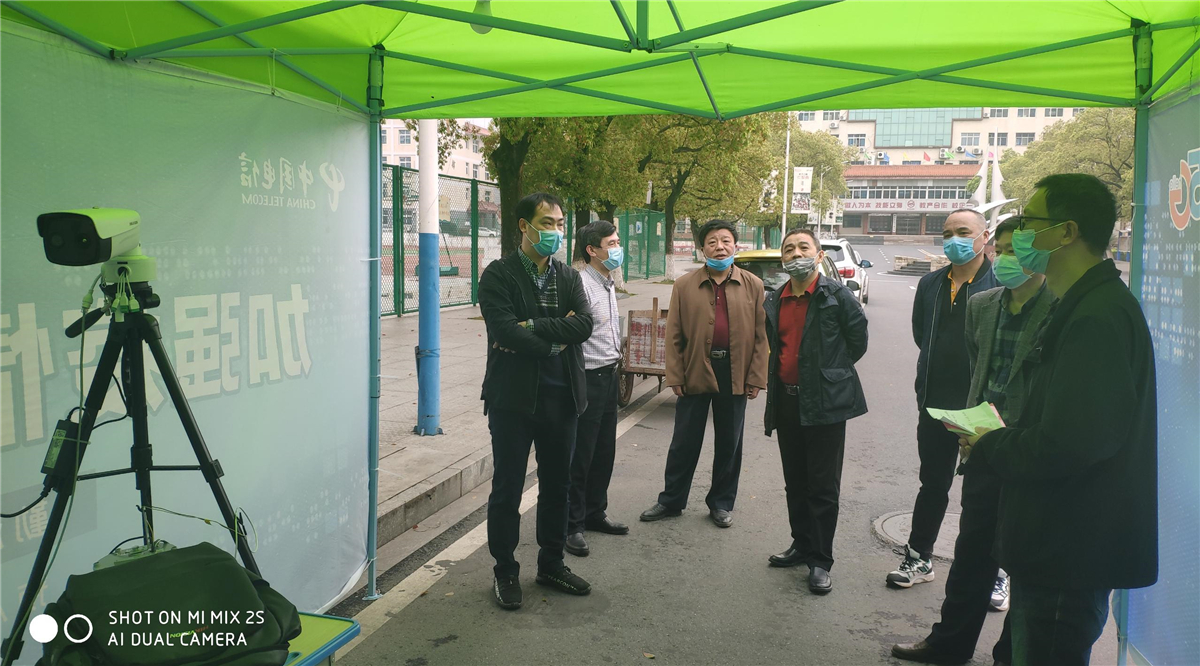3月23日下午,市教育局电教馆负责人肖原成、装备站负责人邹小明、财审科负责人何海等在校长胡浩然、副校长刘海林、李峰的陪同下,对我校防疫体温筛查检测设备的安装调试工作进行了认真检查验收。在安装调试现场,验收组负责人反复强调,明确要求项目承建单位市电信公司和供应商一定要确保所有设备安装调试到位,要组织专业技术人员对学校相关人员进行培训,确保能熟练操作该设备系统;要对体温筛查检测用的帐篷必须进行加固。同时,对我校做好该设备系统的运行、维护管理提出要求,明确要实行定人、定岗、定责管理,保障设备正常运行使用,切实发挥体温筛查检测设备的作用,减轻学生返校复学后集中进校门时的体温筛查检测压力,避免造成校门口处人员的拥堵。最后,胡浩然校长向市教育局检查验收组的同志介绍了我校学生返校复学的各项准备工作情况,检查验收组给予了充分的肯定。