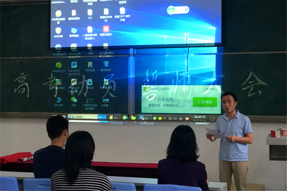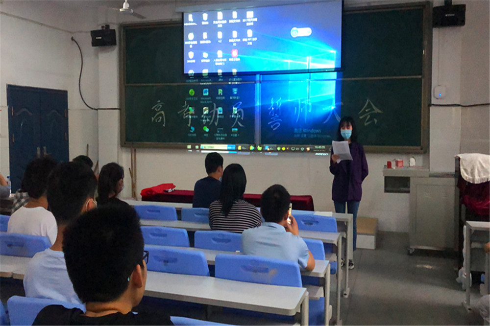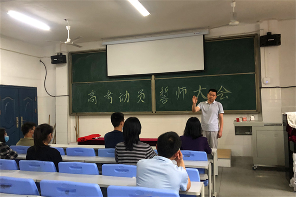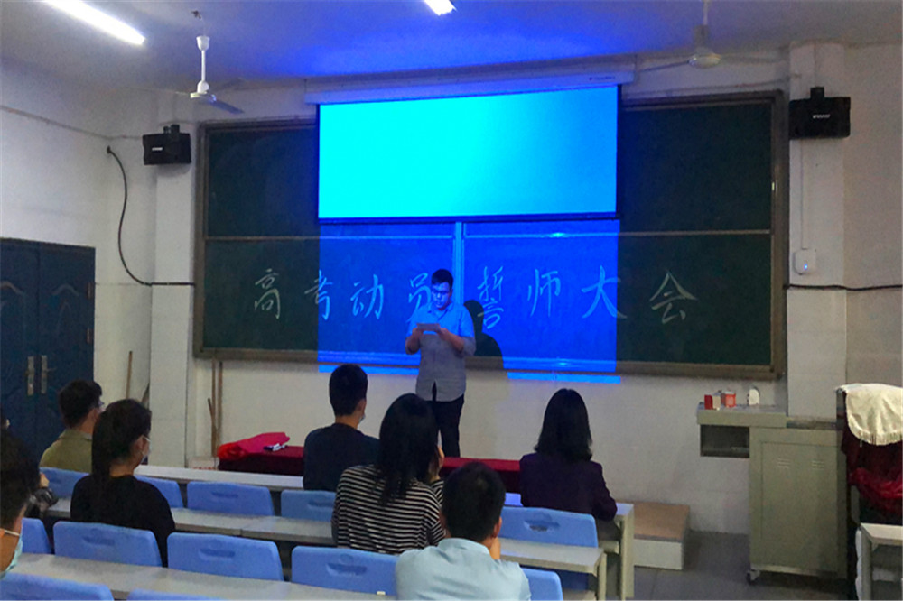 高考部付向辉老师首先讲话。2020年,由于新冠肺炎疫情的影响,注定是特殊的一年,注定是载入史册的一年;2020年的天津高考,注定是特殊的高考;希望大家努力克服疫情带来的不利影响,有更多的担当感、责任感和使命感,想更多的办法和更好的方法,争创我校最佳的高考成绩。
