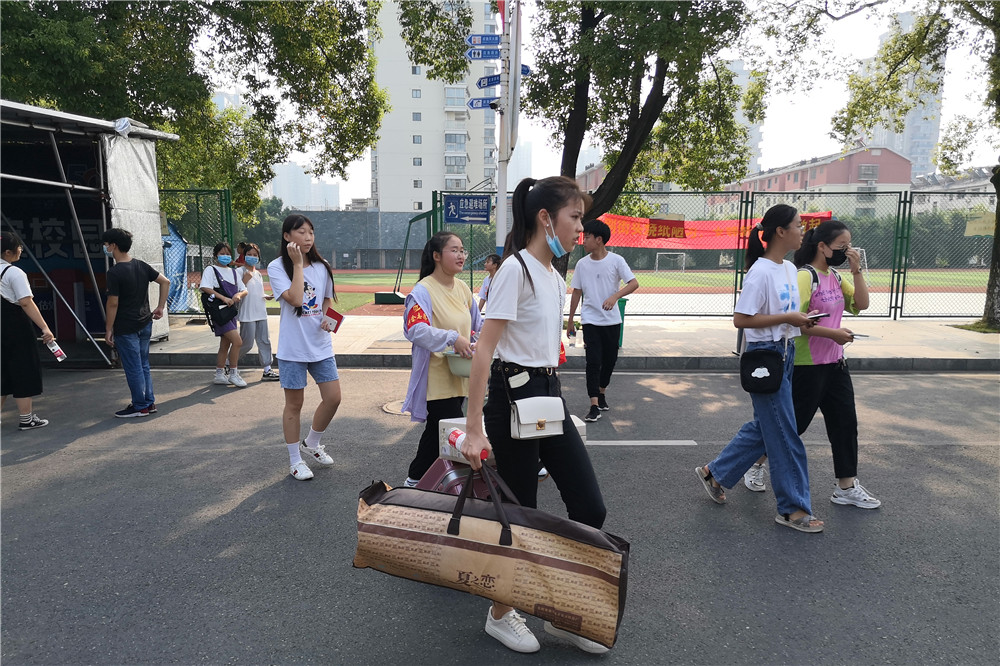 一大早,来自四面八方的莘莘学子便怀揣着梦想与憧憬聚集到学校大门口。根据疫情防控的要求,为培养学生自主能力,学校要求家长一律不能进校,学生通过测温棚体温正常才可进入校园。学校组织教师党员志愿者和学生服务队引导新生办理入学登记手续,帮助学生拿行李物品,熟悉学校环境。