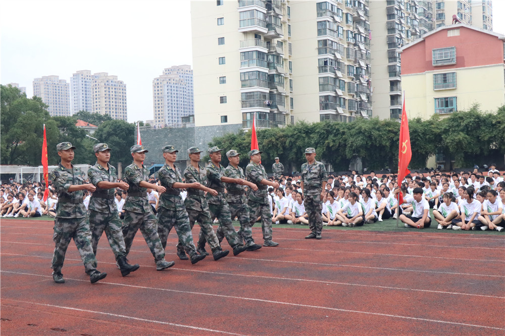 来自新钢武装部的军训教官们为在校师生展开了一场精彩绝伦的队列示范表演。在表演中教官们就稍息、立正、跨立、敬礼等动作进行了展示。教官们整齐划一的动作,铿锵有力的口号展示了新时代军人风采,获得了全校师生的阵阵喝彩。
