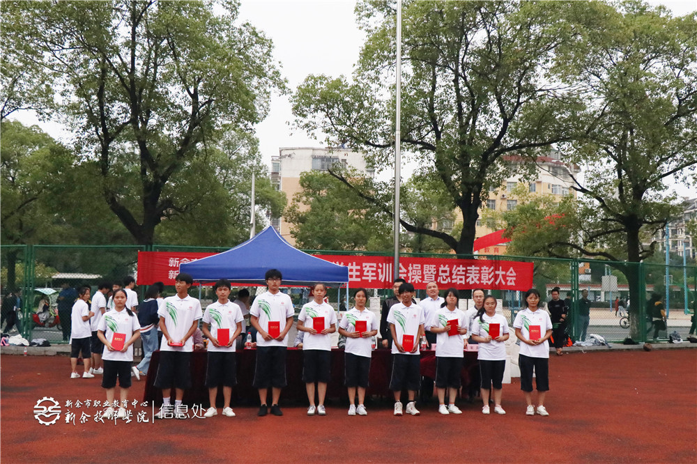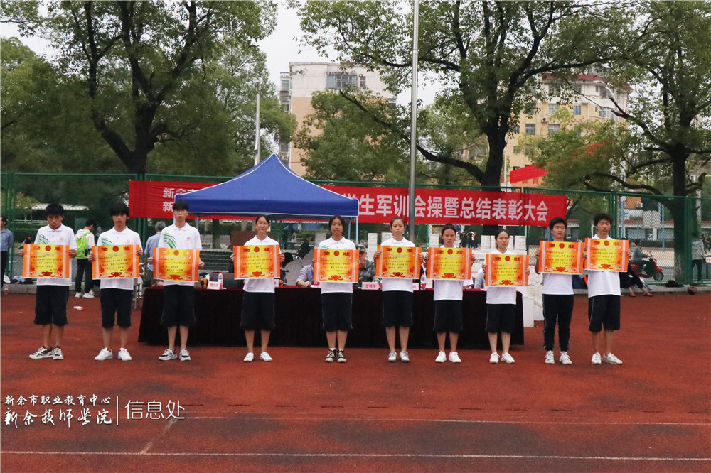 接着,副校长李峰公布优秀学员、优秀教官、优秀连队名单。校领导为优秀个人和连队颁奖。最后,校长胡浩然宣布2020年新余市职业教育中心军训会操比赛圆满落幕。