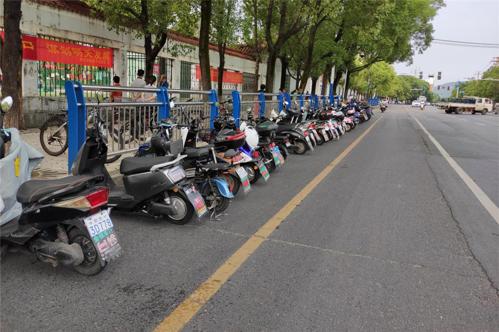 今年约800余名2020级秋季新生进入学校,其中大部分都是住在城区附近的走读生,很多学生都是骑电动车或自行车来学校。由于校园内的停车位置有限,为了图方便很多同学将自己的车辆停放在校园外马路上,给交通安全带来了较多隐患,也给其他行人通行造成不便。