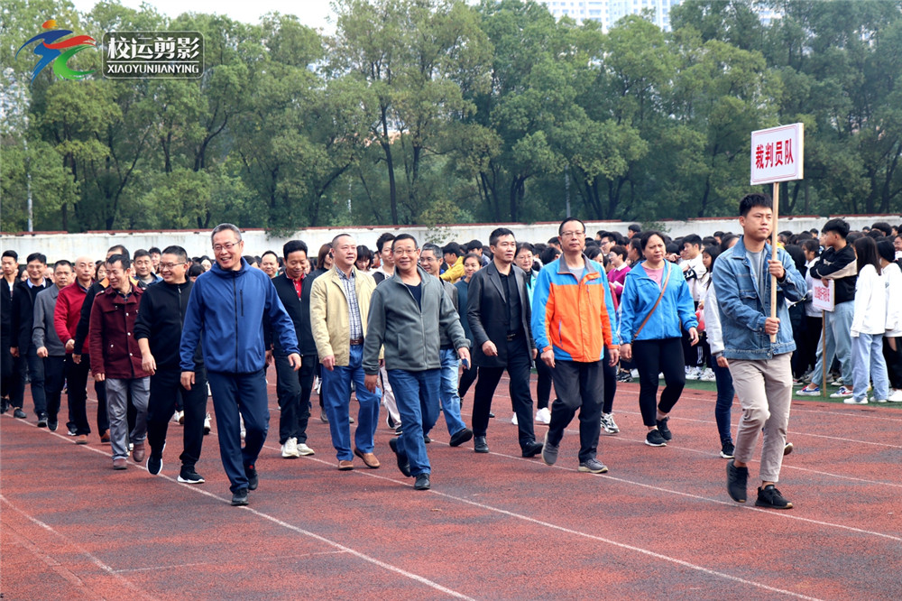 上午八时,学校呈现一幅幅灵动的画面,彩旗招展,绿茵含笑,在激扬高昂的旋律声中,彩旗队、会徽队踏着整齐的步伐经过主席台接受检阅,队伍井然有序、脚步铿锵有力。77支班级方阵紧随其后,同学们个个精神抖擞、激情昂扬地走过主席台,一展班级风采;表演队同学们青春活力;裁判员们笑容可掬,形成一道道美丽的风景线。