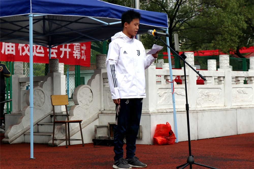 接着,裁判员谭恩伟、运动员温家豪同学分别代表全体裁判员和运动员庄严宣誓。