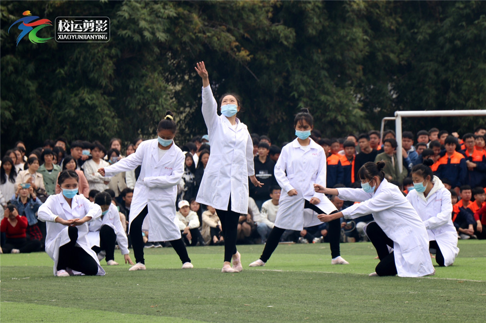 最后,学前教育专业的同学们带来了以“向英雄致敬·愿逝者安息”为主题的舞蹈团体操表演,精彩的表演迎来了阵阵喝彩,热烈的掌声响彻了整个田径场。
