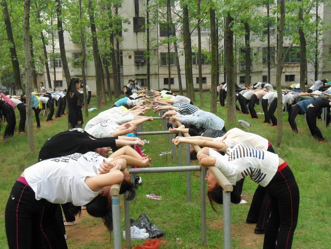 音乐响起,伴随着优美、动听的轻音乐及形体训练指导教师清脆的口令声,压腿,侧腰、前腰、后腰拉伸,控腰,下腰,同学们毫无懈怠地一一训练到位,累了、痛了、眼泪流出来了,但这些丝毫不能影响同学们晨练的热情。