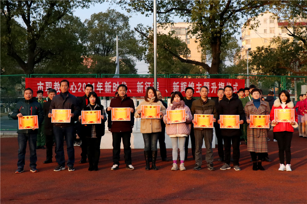 日月其迈,岁律更新,告别砥砺奋进的2020年,迈入华章初展的2021年,2021年1月4日,新余市职业教育中心隆重举行“新时代、新征程 、新辉煌”为主题新年首次升旗仪式,老师同学们注目国旗冉冉升起,高唱国歌。升旗结束后,校党委书记刘小图宣读了2020年中职国家奖学金获奖者、纪念“一二·九”运动八十五周年红歌合唱获奖班级、2020年江西省职业院校技能大赛获奖学生、第六届校园技能竞赛文化节获奖班级及学生名单,学校领导分别给他们颁发荣誉证书和奖状。接着值周班学生代表对上周情况进行了通报。