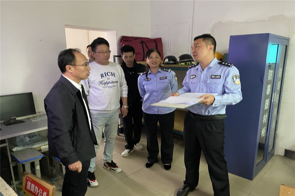 10月15日上午,北湖派出所一行四人来市职业教育中心对接检查全省校园安防“四个一”工程建设,分管安全工作宋兵主席与保卫处全体人员陪同。