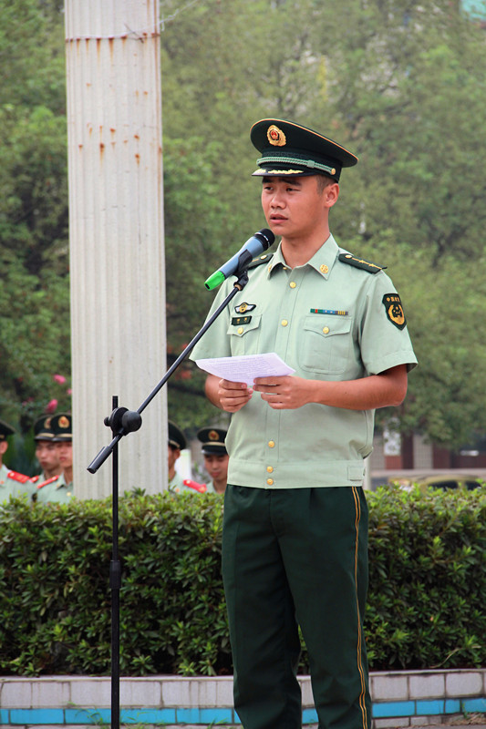 接着武警新余渝水消防大队中队长涂引同志讲话,并对军训工作给出承诺:一是科学训练,精心组织,尽职尽责,使军训开展的严肃活泼,让同学们掌握军人基本列队动作,增强国防意识,完成好训练任务。二是在训练中严密组织,耐心指导,不放过任何一个细节,认真解决训练中的问题。三是思想上高度重视,以饱满的精神状态和良好的军人形象做好表率。随后,教官代表贾兴康发言,他表示会以身作则严格要求自己,科学训练学生,与同学们一起努力完成此次训练任务。