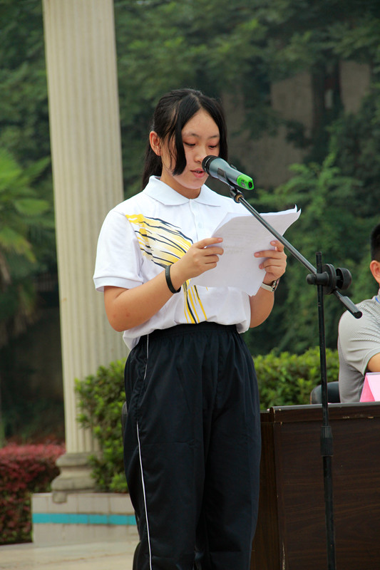 来自高考3班的学生代表晏玉婷代表全体新生向教官、老师做出了自己的承诺。