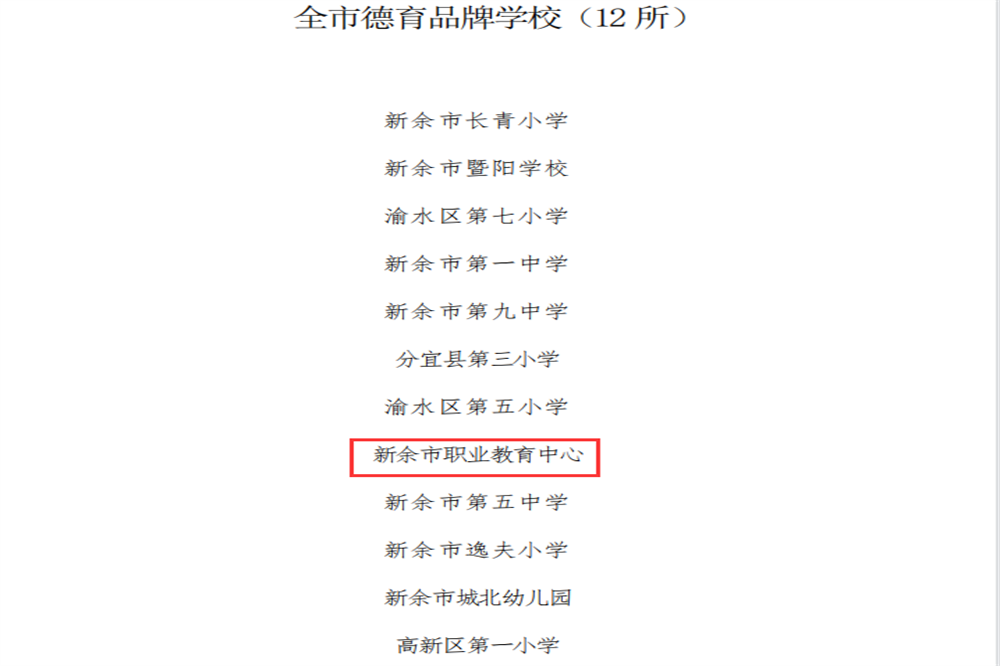 市职教中心荣获 “新余市德育品牌学校”称号