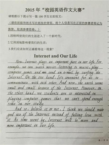 为了丰富同学们的校园文化生活,营造浓厚的校园英语学习氛围,提高广大学生的英语写作水平,为学生提供展示自我、激励他人的平台, 2015年5月13日下午,基础教研室在学校七楼多媒体教室举行了一次校园英语作文大赛。本次比赛参赛学生达60多人,经我校英语老师的认真评选,共有18名优秀选手脱颖而出。