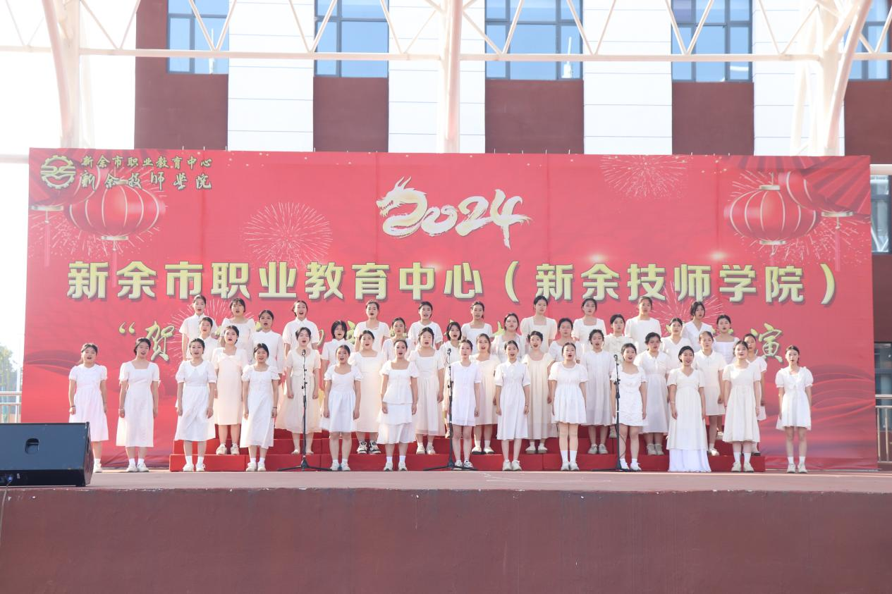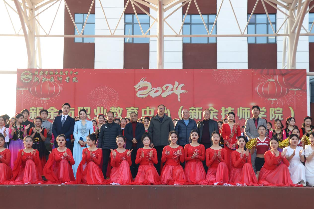 凯歌高奏辞旧岁,东风自得迎新年。新余市职业教育中心(新余技师学院)于12月28日下午在仙女湖校区举办“贺新迁、迎新年、向未来”元旦文艺汇演,三千余名师生欢聚一堂,共同迎接新年。胡浩然书记、任凤生校长、李峰副校长、宋兵副校长、喻青勇副校长到场观看演出。汇演由张寒柏、刘江欣、章萌、华振新老师主持。