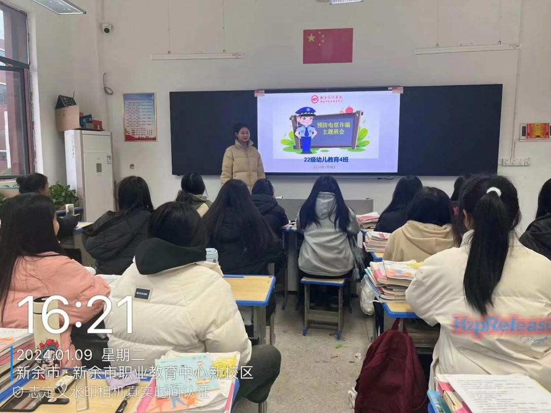 随着信息技术的进步,各种诈骗现象已成为社会日益突出的问题,为建设平安和谐校园,进一步提高师生预防电信网络诈骗的意识,掌握防诈骗的技能,有效减少和遏制各类诈骗案件的发生,增强自我保护能力。2024年1月9日下午,新余市职业教育中心开展预防电信网络诈骗主题班会活动。