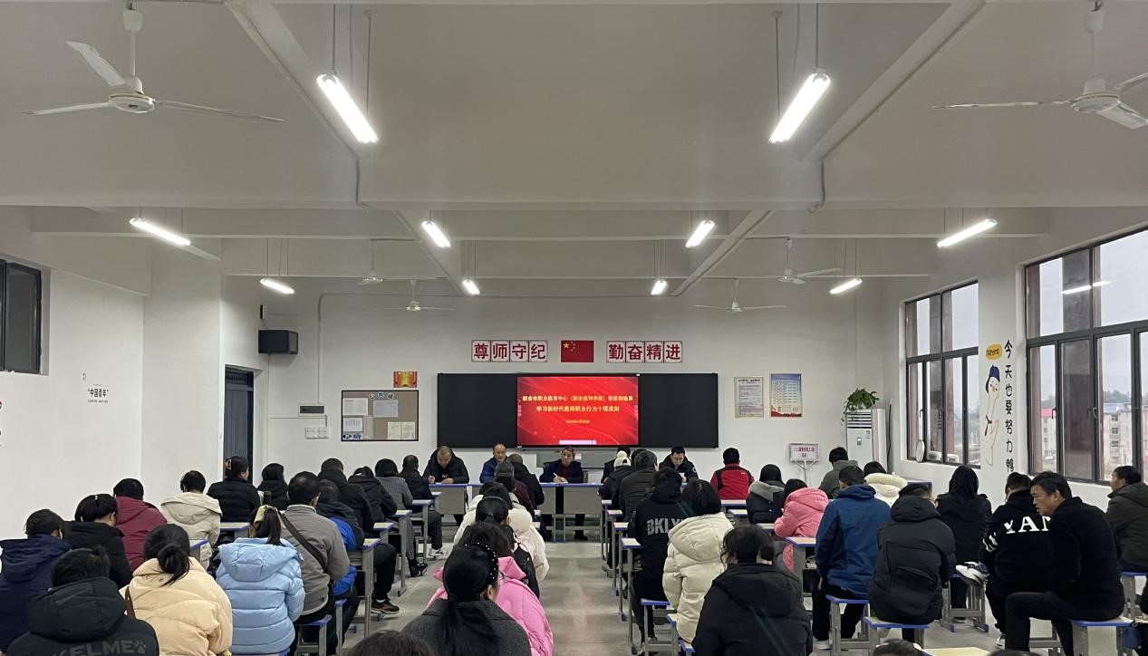 2024年1月20日下午,新余市职业教育中心(新余技师学院)智能制造系在3号楼A303教室召开2023-2024学年第一学期系部教师大会,会议主要围绕学习师德师风相关文件精神、回顾本学期的工作以及下学期的准备工作等方面进行。党委书记胡浩然、副校长喻青勇出席会议,智能制造系全体教师参加,会议由智能制造系部主任帅国勇主持。