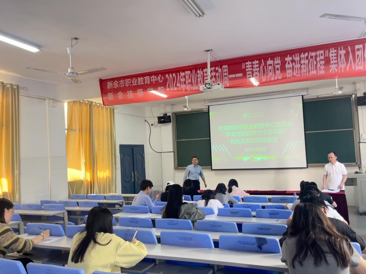 为深入学习贯彻习近平新时代中国特色社会主义思想和党的二十大精神,贯彻落实习近平总书记考察江西重要讲话精神,引导广大党员干部听党话、感党恩、跟党走,5月13日下午,市职教中心在教学楼B201举行“学党史党纪 庆七十五华诞”知识竞赛活动。