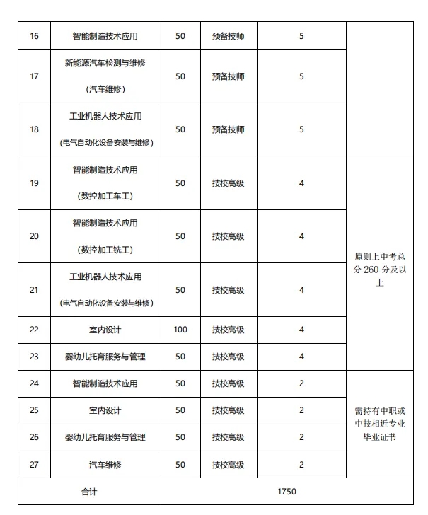 2.报读两年制高级工班的学生需有中职或中技相近专业毕业证书。