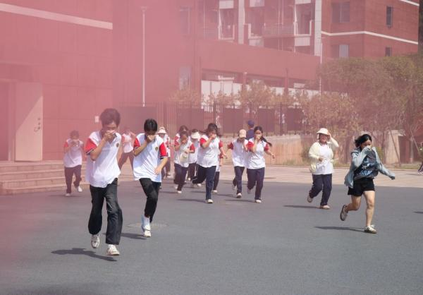上午10:00,随着警报声响起,新学期的第一次逃生疏散演练开始,在消防员的指挥下,学生们用湿毛巾捂住口鼻、弯下腰,按学校指定的逃生路线迅速有序地逃离“火灾现场”,到安全场地集合。整个演练过程,紧张、快速、安全、有序,达到了预期效果,有效提升了全校师生的火灾逃生能力。
