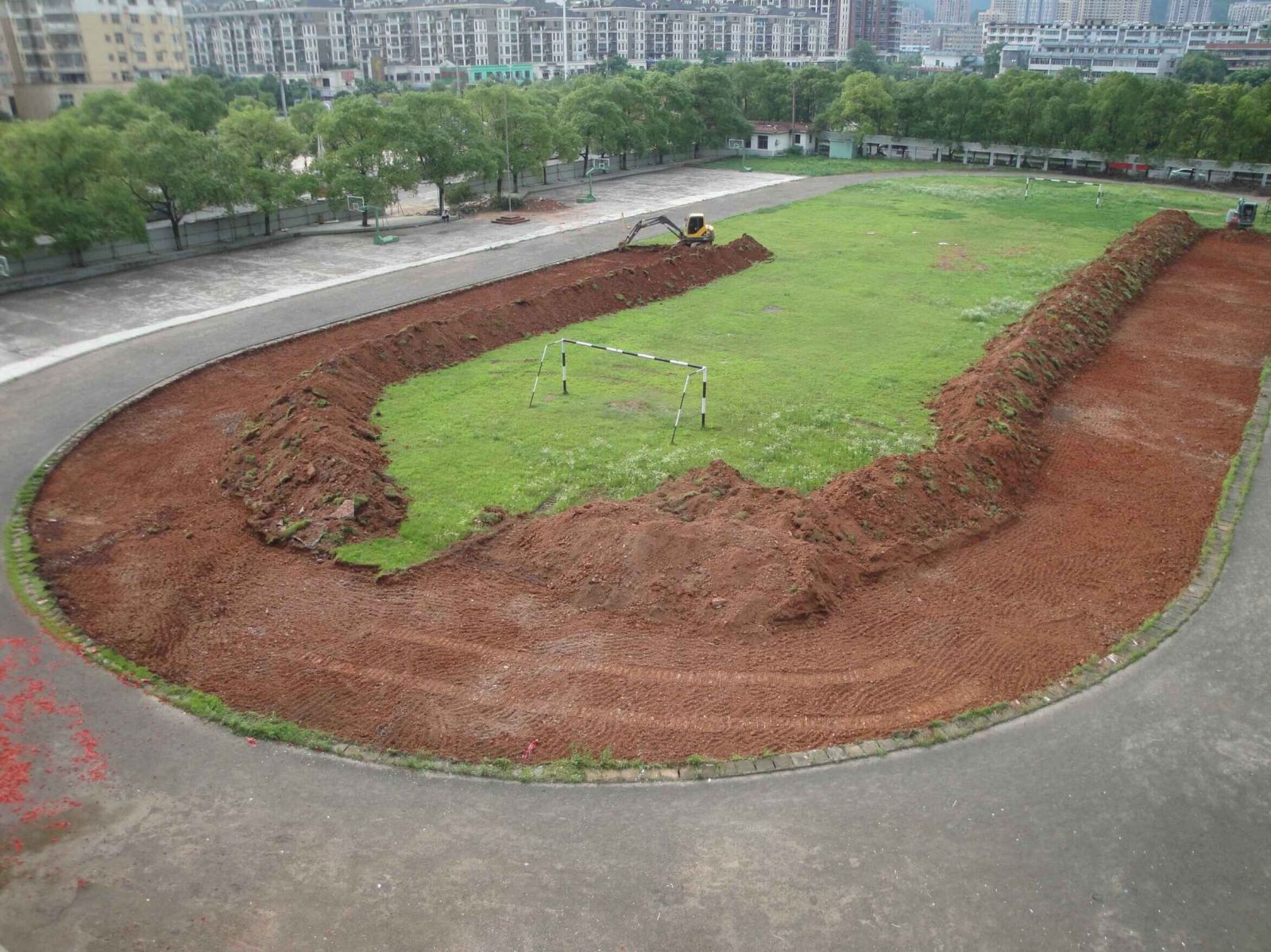 6月17日上午9点18分,阳光明媚,我校运动场改建工程项目正式破土动工。本着勤俭节约的原则,学校没有举行专门的开工仪式。在施工单位的机械进场下,静静地拉开了运动场改建的序幕。