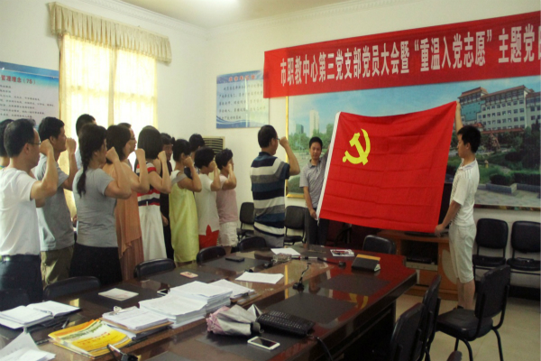 为提高党员责任意识,增强党员党性修养,让党员铭记入党誓词,勿忘入党初心,6月14日下午,新余市职业教育中心党委组织开展“重温入党志愿”主题党日活动,全体党支部党员重温入党誓词,学习《中国共产党章程》及习近平总书记系列重要讲话,深化“两学一做”主题教育学习。