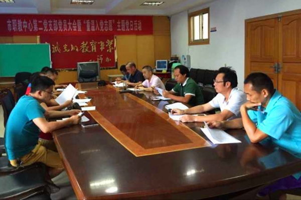 8月5日下午,为迎接我市第一个“主题党日”,扎实推进“两学一做”学习教育深入开展,按照全市统一部署,市职教中心党委结合学校当前形势,分支部组织开展“艰苦奋斗攻难关”主题党日活动。