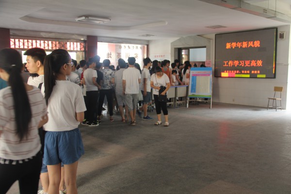 91日,学校2016年秋季开学报名工作正式拉开帷幕。校园公示栏上学校教室分布平面图、班主任名单、收费公示以及四周树立的安全标语十分醒目,教学楼电子屏幕上“欢迎新同学”、“ 新学期、新起点、新高度、新挑战、新希望”横幅标语更是透出温馨的暖意,20名教师、学生志愿者分布在校门口、招生办、教学楼、宿舍楼为前来报到的新生提供帮助。