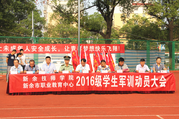 9月8日上午,新余市职业教育中心(新余技师学院)2016级新生军训动员大会在校运动场隆重举行。武警新余渝水消防大队平安路中队队长涂引、校党政班子全体成员出席动员大会,大会由校党委书记胡浩然主持。