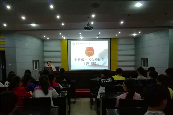 林露副书记围绕“什么是共青团员”、“为什么要加入共青团组织”、“五四青年节的由来”、“团旗、团徽、团员证介绍”、“职教中心共青团工作”等对团员青年进行了教育。讲座中,全体同学观看了《“萨德”到底是什么》教育片,林老师向同学们简要介绍了萨德事件的由来,装置萨德对国家安全的影响,教导共青团员树立正确的爱国思想。最后,林露副书记指出做一名合格共青团员要从以下五个方面努力,一是做一名合格共青团员,要坚定理想信念、追求美好人生;二是做一名合格共青团员,要践行工匠精神、练就过硬本领;三是做一名合格共青团员,要紧扣时代脉搏、勇于创新创造;四是做一名合格共青团员,要矢志艰苦奋斗、永葆青春本色;五是做一名合格共青团员,要勤于修身养性、锤炼高尚品格。