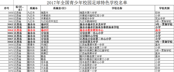 近日,教育部在学校自主申报、各级教育行政部门审核推荐的基础上,认定了一批足球特色学校,新余市职业教育中心作为2017年新余市唯一一所高中阶段的学校入选。