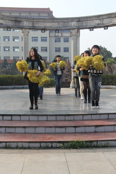 35日上午,新余技师学院“走进校园”文艺队正在灯光球场进行紧张排练。费颖老师组织排练工作。