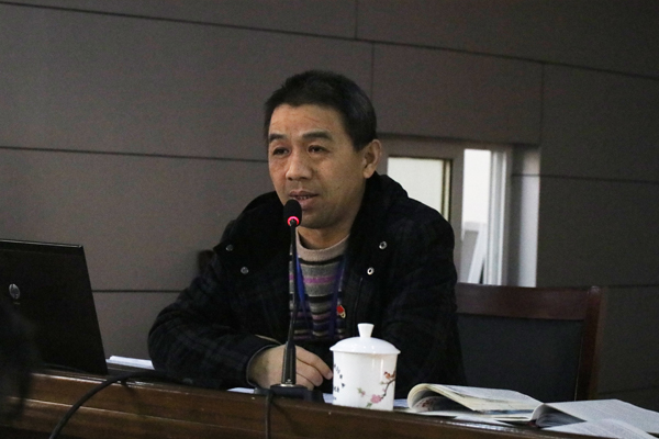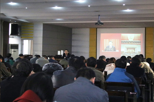 128日下午,市职教中心校党委书记胡浩然在图书馆五楼会议室讲授学习十九大精神专题党课。